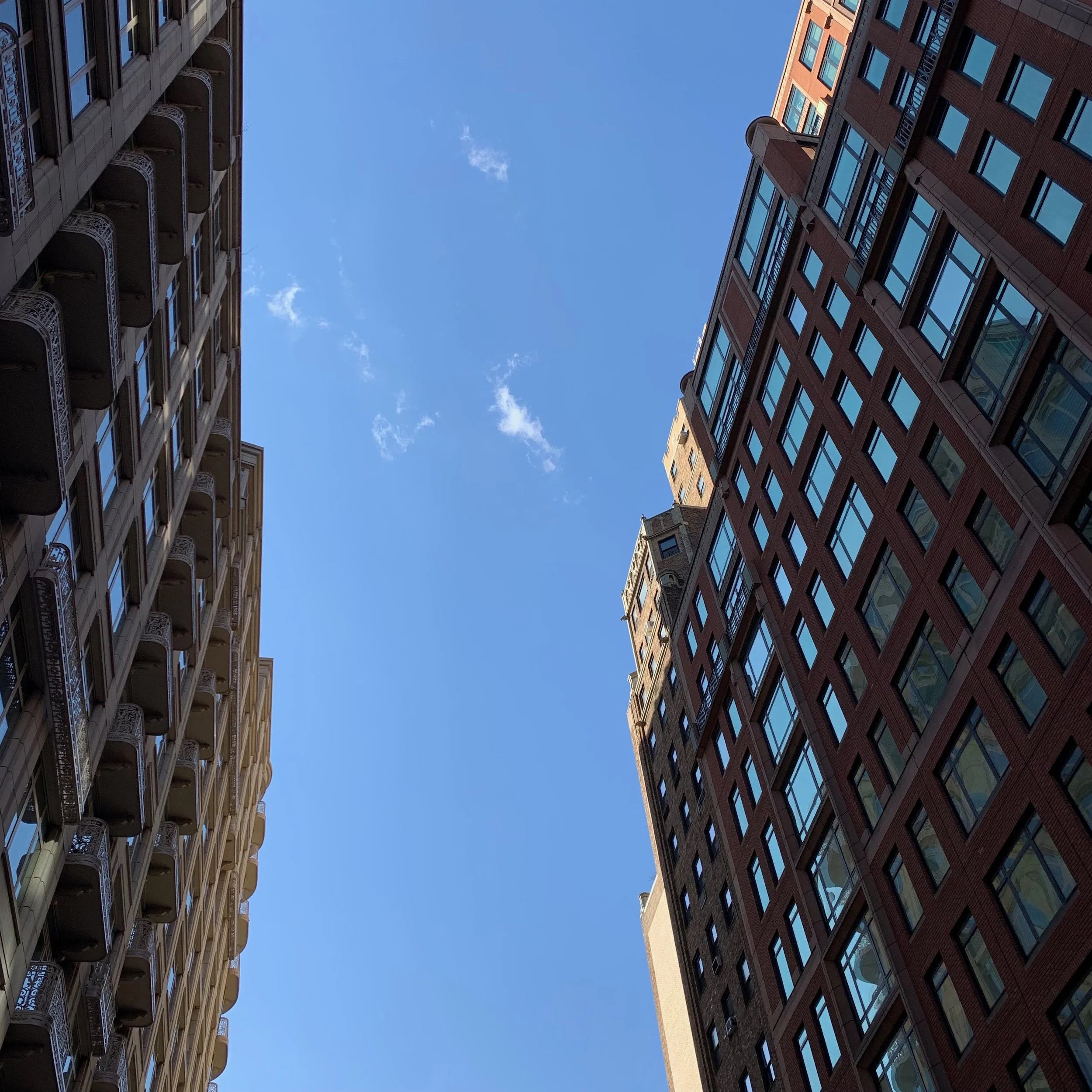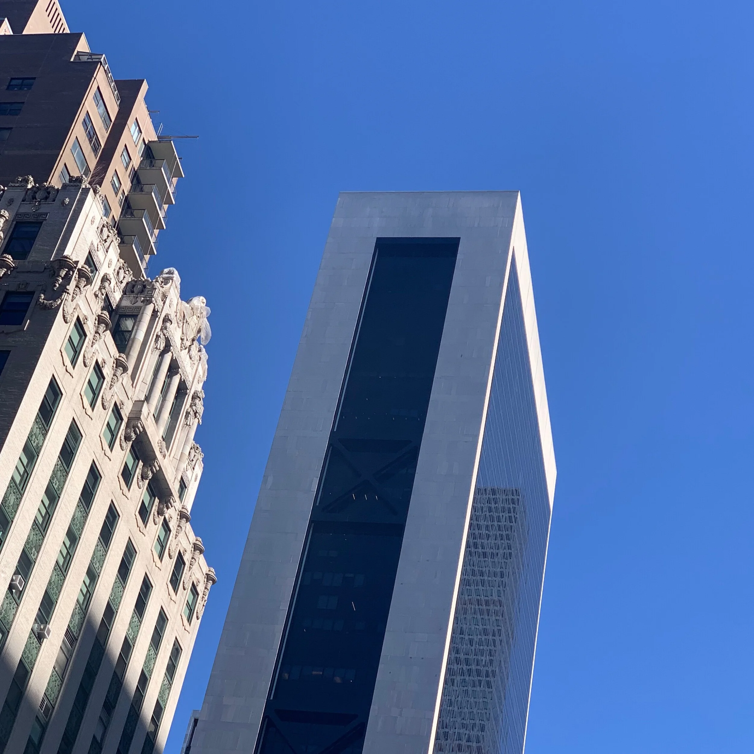 Growing up in Greece one gets used to great sunlight and blue skies 90% of the time. In Manhattan, not so much, so whenever I get the chance, I capture a blue instant souvenir from the NYC sky.